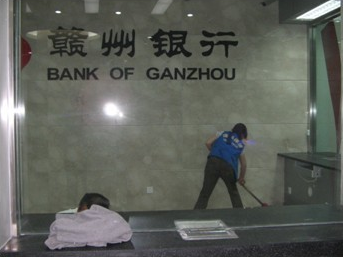 迪邦保潔公司人員正在為“贛州銀行”做開(kāi)荒保潔