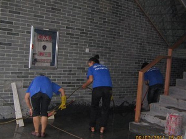 迪邦保潔公司人員正在為“金玉滿(mǎn)堂酒店”做開(kāi)荒保潔。