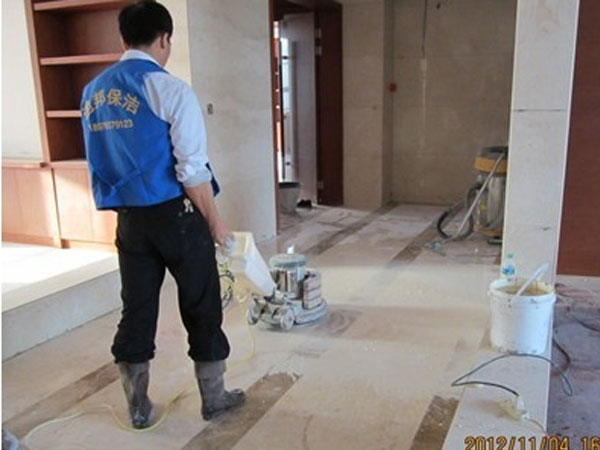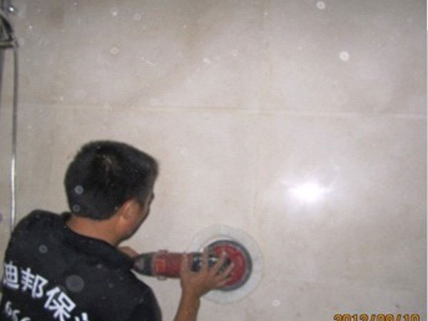 迪邦保潔公司保潔員正在為“暨陽(yáng)福建商會(huì )”做地面、墻面石材翻新